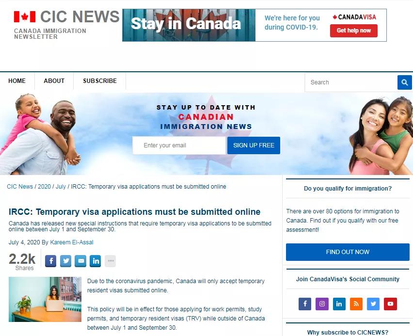 加拿大移民部做出新要求:7月1日-9月30日,所有申请加拿大签证的外国人一律须在线递交申请!